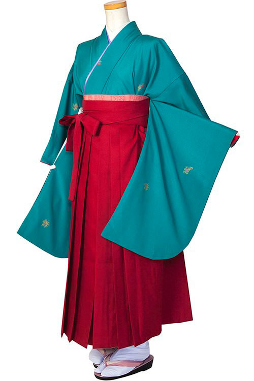 シンプルだけど淡い緑の色合いがとても良い感じです。えんじの袴と組み合わせて引き締まった感じもOK!