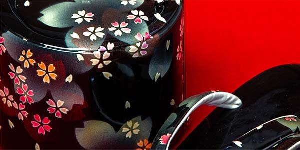 円柱型の個性的なバッグ。黒地に桜の小花柄で【かわカッコいい】。振袖はもちろん、訪問着等でも利用可能です