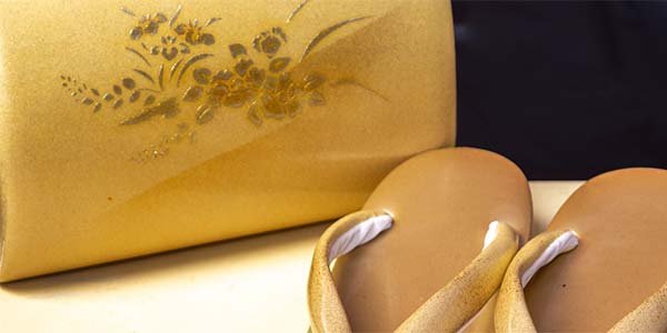 地模様を織り込んだ生地に刺しゅうを施したバッグで、光沢を抑え上品さとかわいさを併せ持ちます。特に草履の鼻緒がすごくかわいい。バランスもGood!