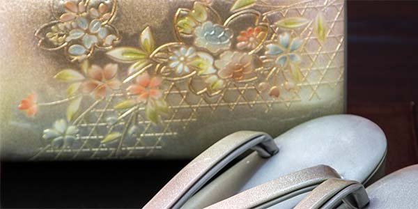 桜やヒナギクの花柄が立体で刻印された草履バッグです
